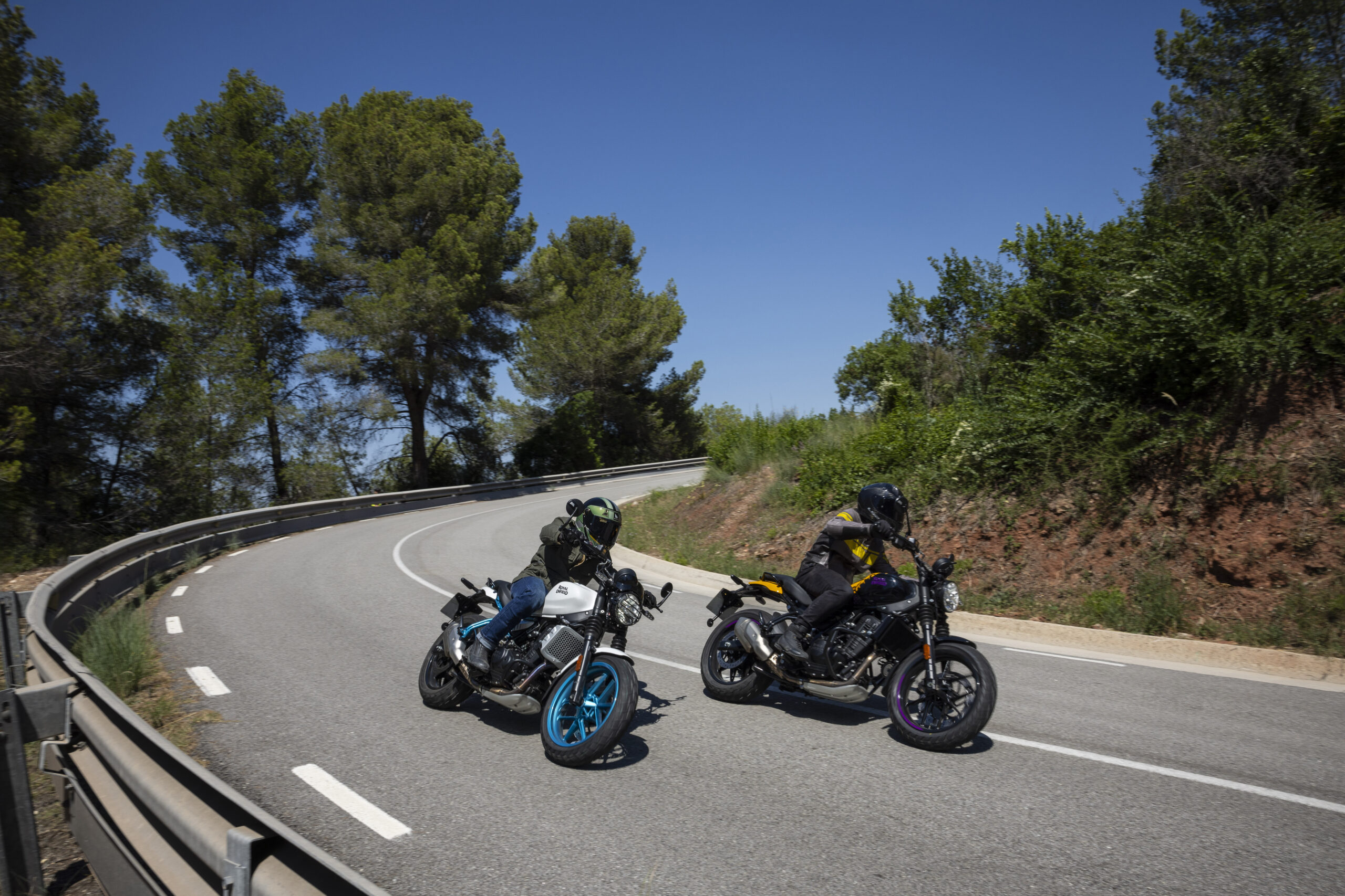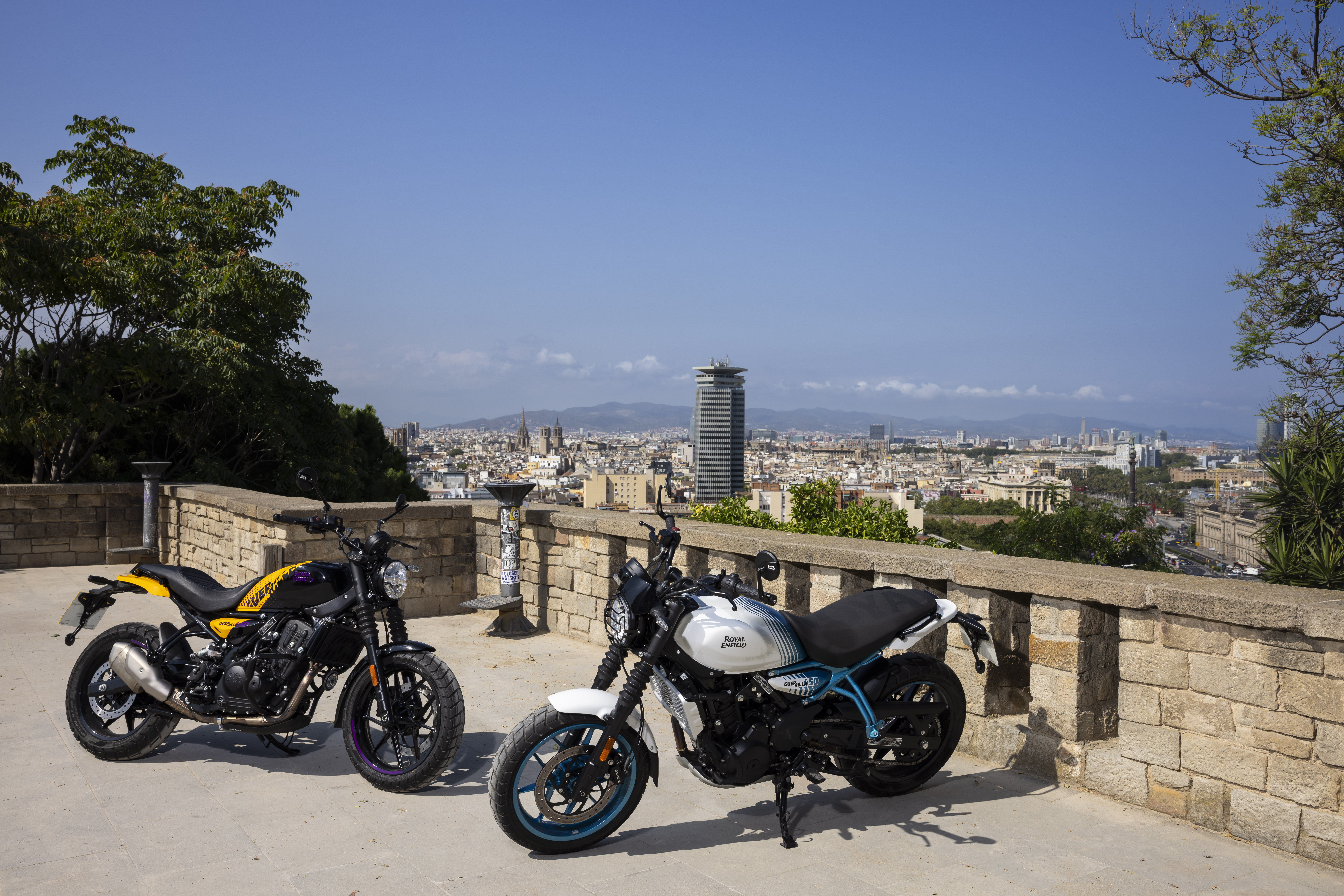 Huur de Royal Enfield Guerrilla 450. Deze krachtige motorfiets is perfect afgestemd op zowel stadsverkeer als bochtige buitenwegen.